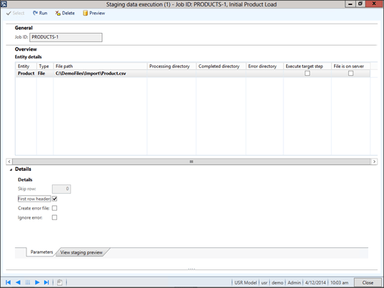 After a second or two, you will be able to look at the View Staging Preview detail tab on the form and see all of the data has been staged for you.