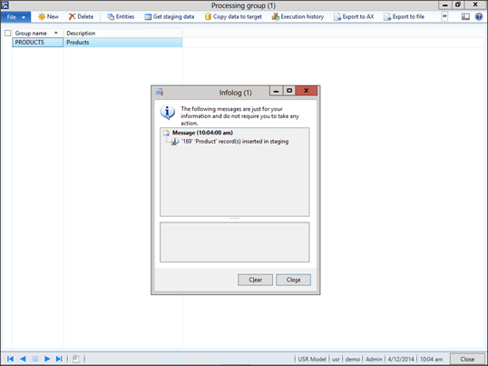 When you return to the Processing Group maintenance form, click on the Get Staging Data menu item to start the import process.