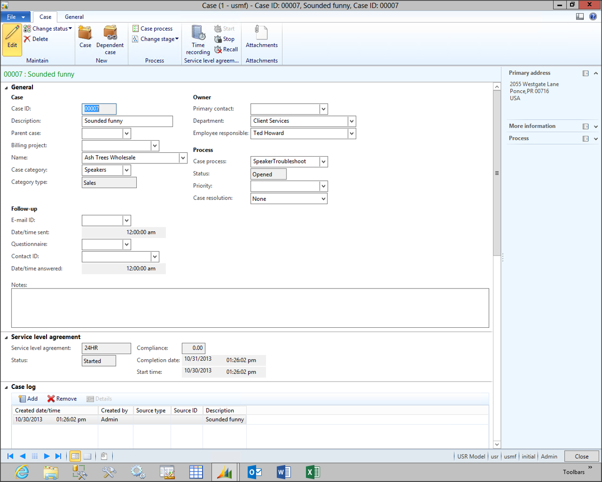 One way that you can use Cases is to track customer issues and complaints, because you can create cases directly from the main forms within Dynamics AX.