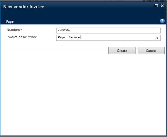 Then a New Invoice dialog box will be displayed into which they just specify the invoice number in the Number field, and add a brief description in the Vendor description field.