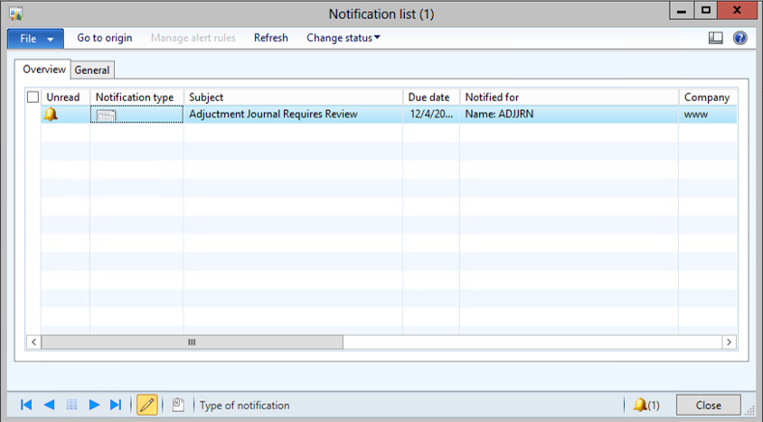 The user that is responsible for approving the workflow will be notified either by a toast popup, an alert, or through email, depending on the notification options that you defined in the workflow that you designed.