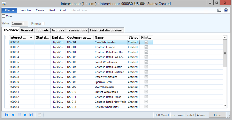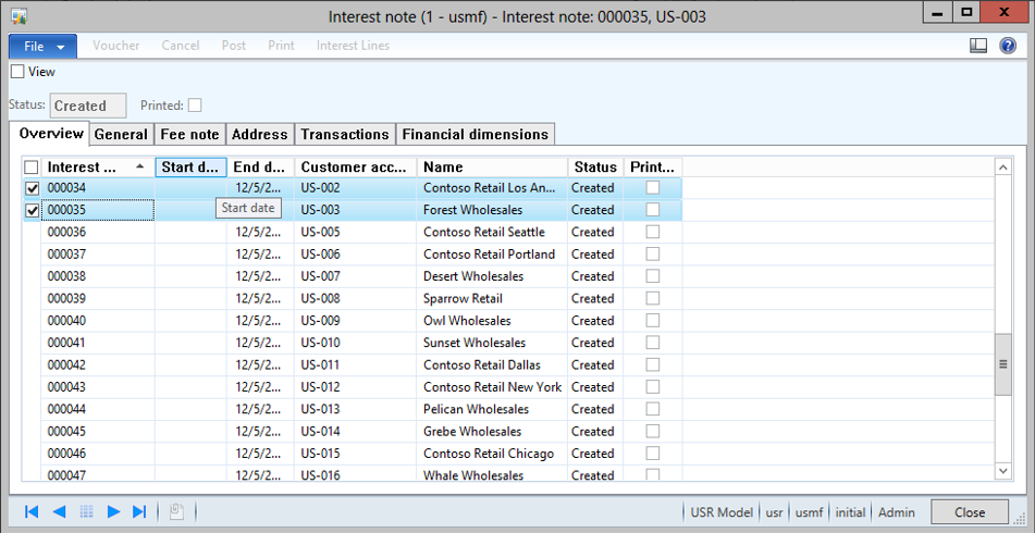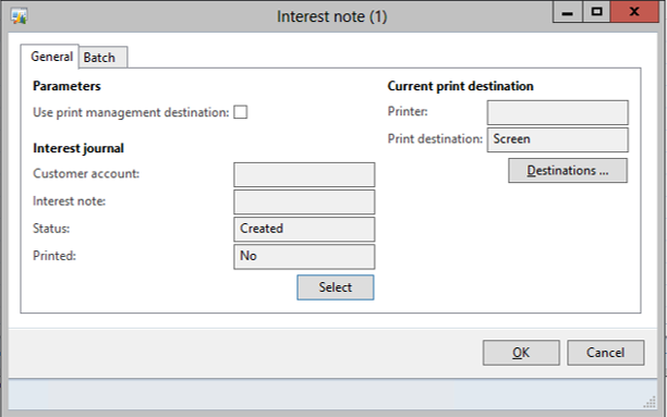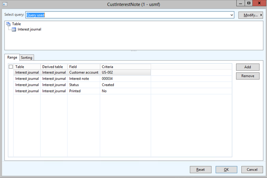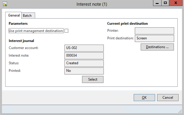 Select one record and click on the menu item that you want to apply to all of the records = in this case the Print option for the Interest Notes. Notice the selection criteria in the dialog form shows the record that will be used for this update.