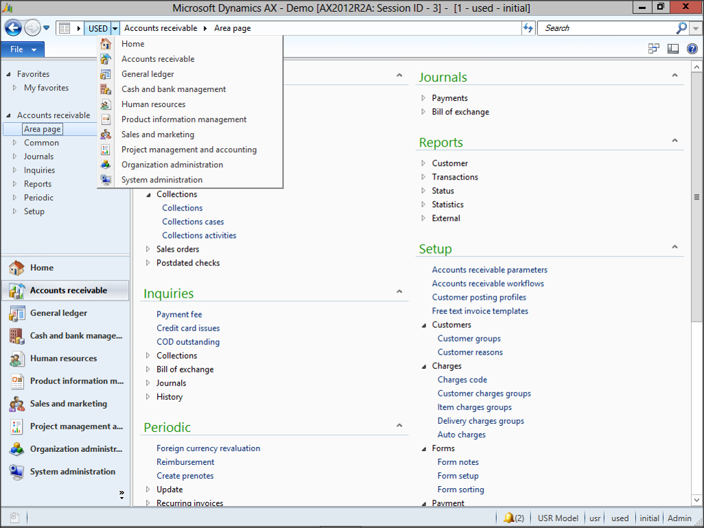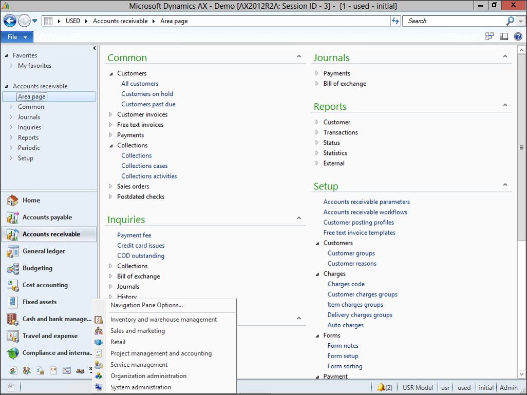 The good thing about Dynamics AX is that you get all the available modules automatically. The downside is that you get all the available modules automatically. You may not want to see the General Ledger, or Accounts Payable modules, all you may be interested in may just be the Distribution modules.