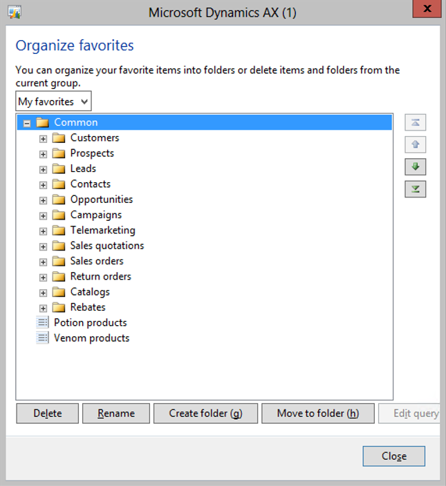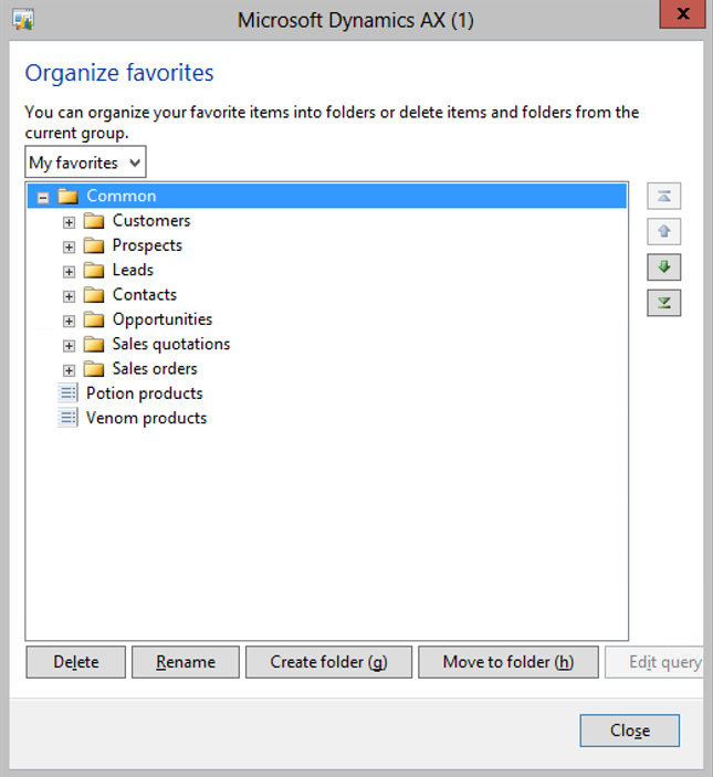 If you want to get rid of some of the submenus, then you can right-mouse-click on the My Favorites menu group, and select the Organize favorites option, which will show you the Organize favorites maintenance form.