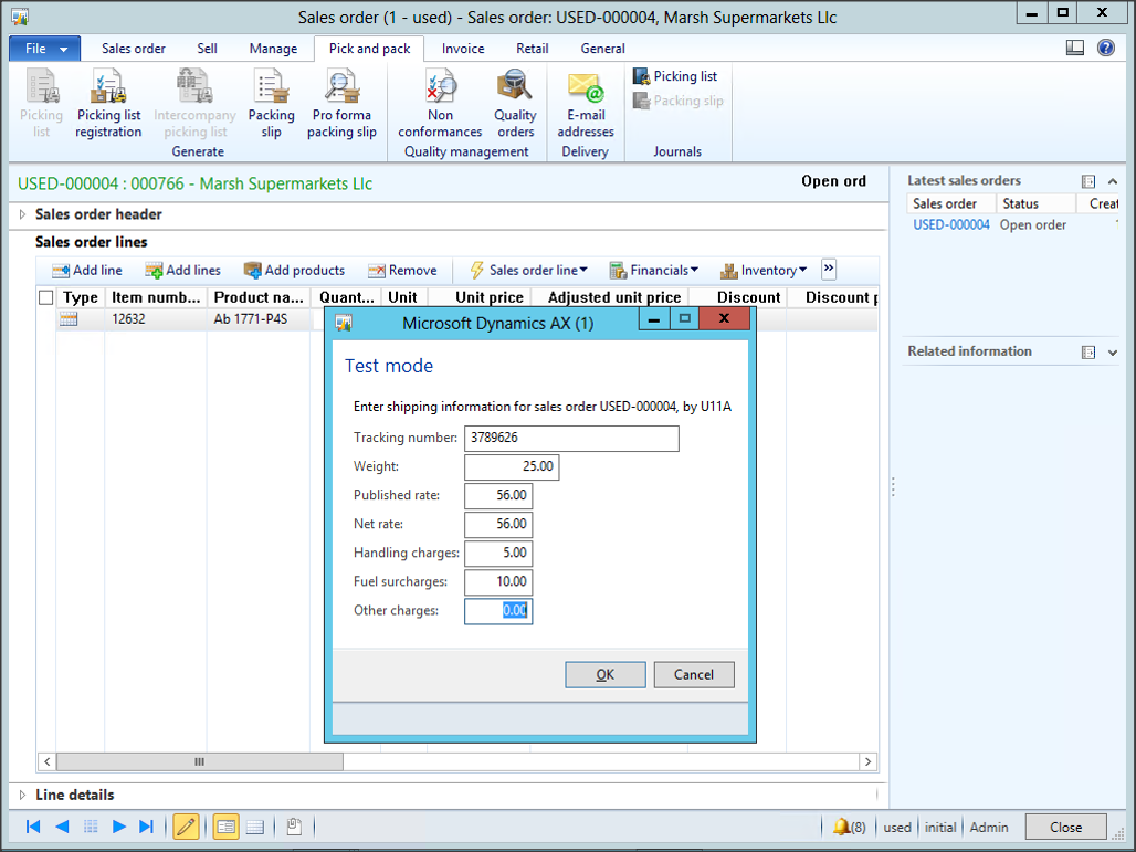 Now when you create a Sales Order that has a Mode of Delivery that has a Carrier Interface associated with it, since this is in test mode, it will ask you to fill in all of the shipping information by hand.