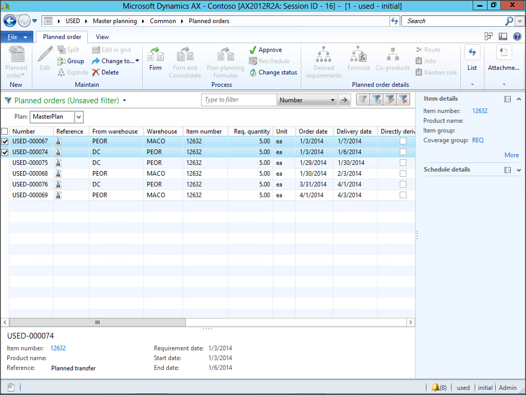 Now when you run your MRP, if you have demand at the child warehouse, then planning will create a transfer from the local distribution center to satisfy it, and that in turn will be replenished from the main warehouse through a transfer as well.