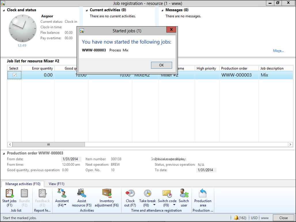 Posting time and materials to production jobs does not have to be a manual, or an after the fact process. Dynamics AX has a featured called Job Registration that allows you to report all of your manufacturing actions in real time through a simple to use touch screen. It tracks all of the material issues in real time, and also tracks who is performing the transaction as well, giving you greater visibility of who is working.