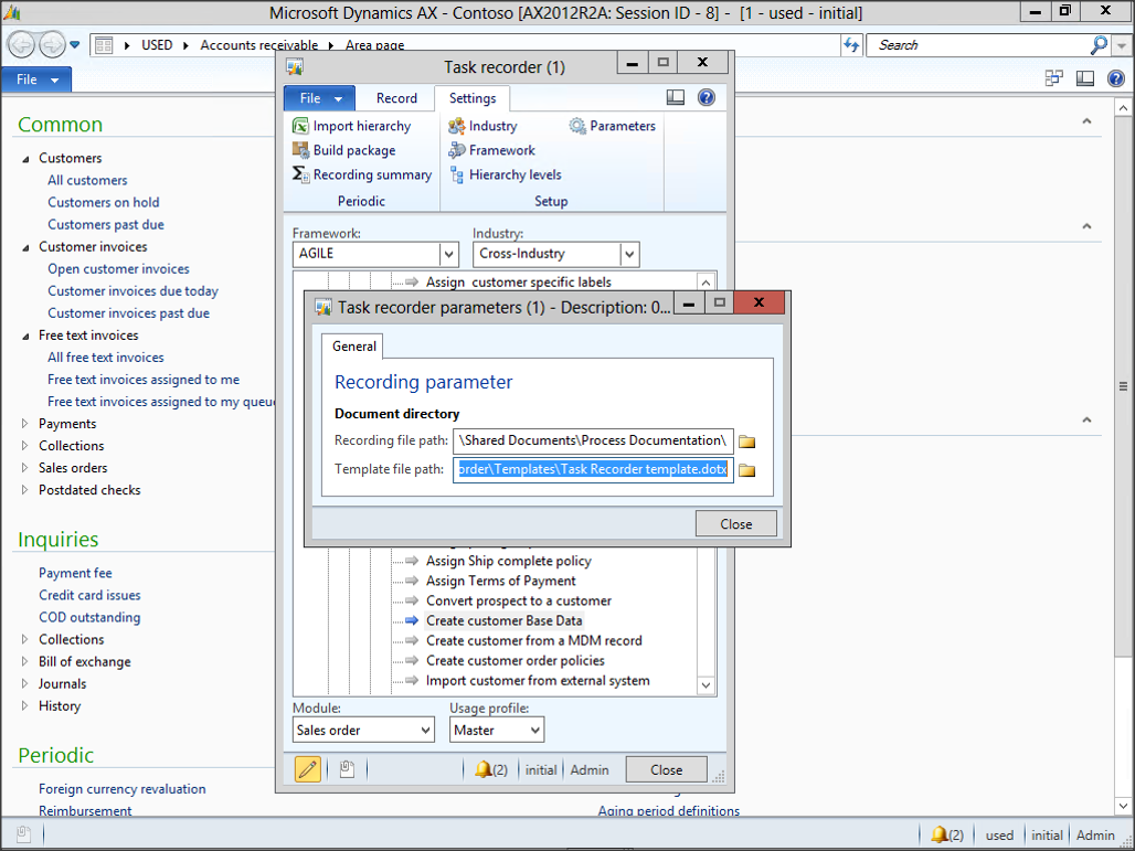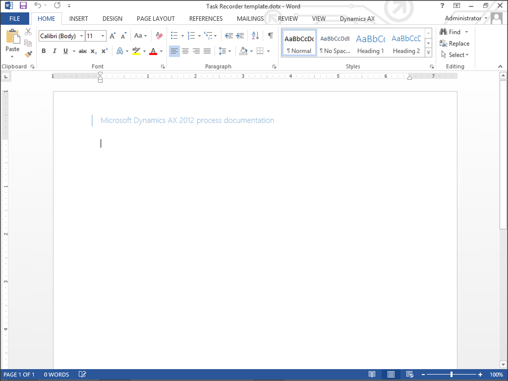 You can see the new template in action by opening up the Task Recorder, finding a business process that you have recorded, and then click on the Document menu item within the Manage group of the Record ribbon bar.