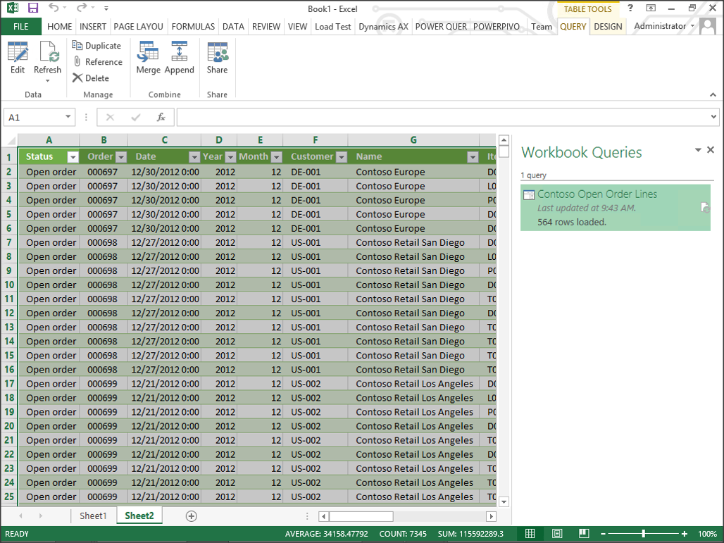 Queries are like mining for gold, because everyone is searching for the motherload of data that is hidden within Dynamics AX, and once they find it, they mine it until it dries out and they have to start prospecting again. Also, the secret maps to that data are hidden away, usually on someone’s own personal hard drive, and are rarely shared with other prospectors. Office 365 and Power Query changes that because it allows you to share any of your queries with everyone within the organization, allowing everyone including the non-technical users that would never create a query.