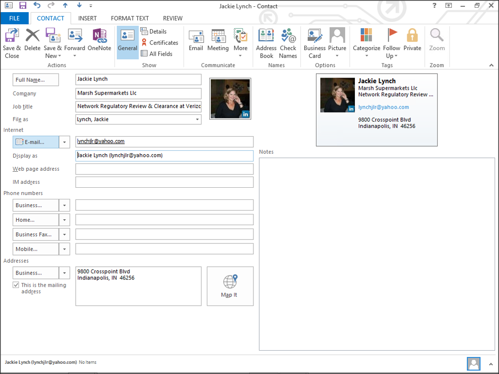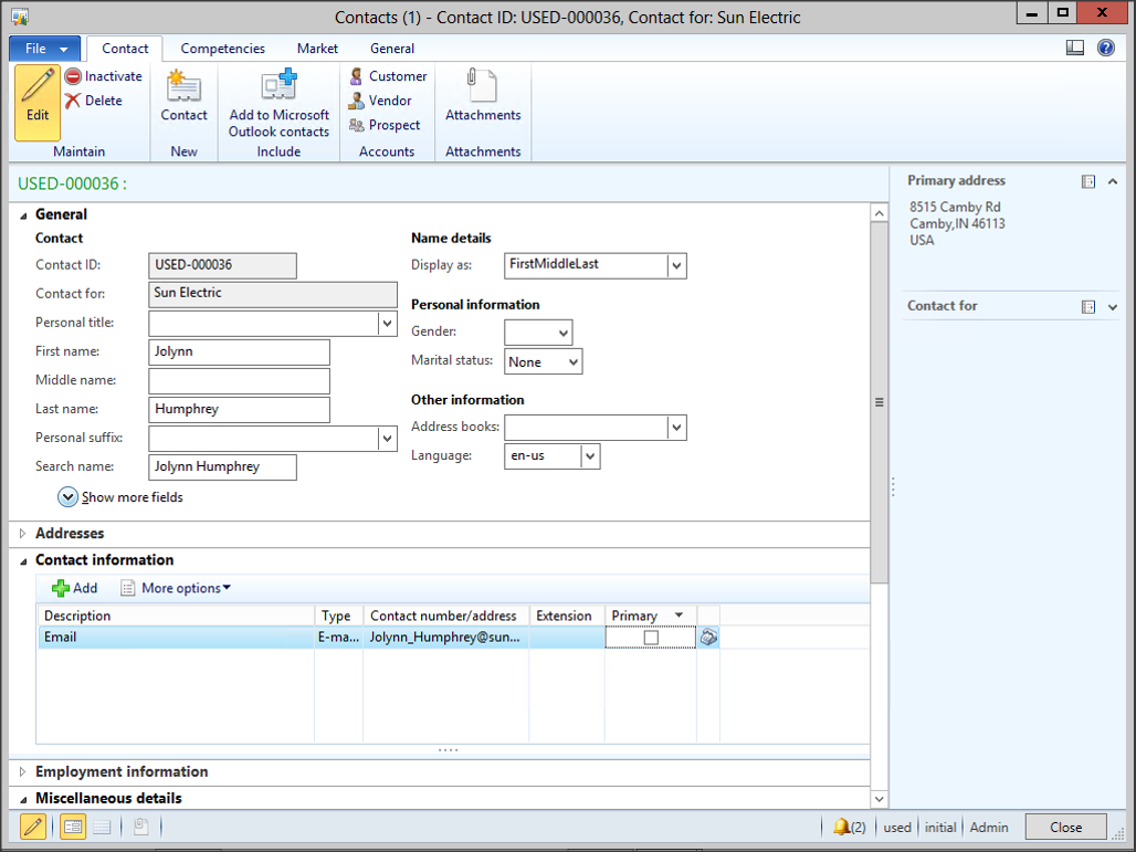 Next, add a contact within Outlook that doesn’t exist within Dynamics AX.