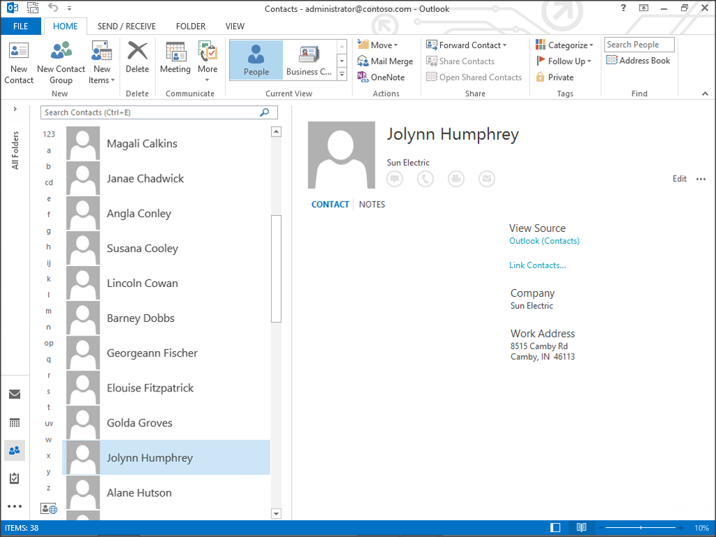 When you return to My contacts all the contacts will now have an link back to Outlook.