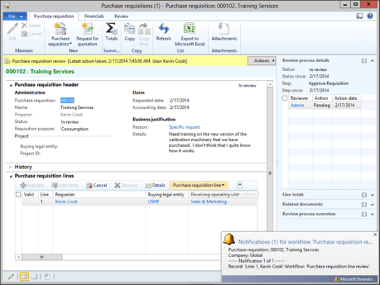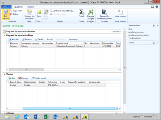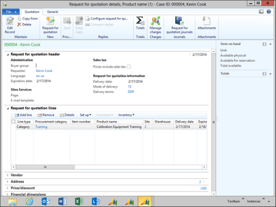 The good thing about requisitions is that the users are able to ask for almost anything, although when they ask for something that you have never purchased before, someone has to source it. Dynamics AX makes this a lot easier, because you are able to create a Request For Quotation for any of the requisitioned lines directly from the Requisition itself that then automatically updates the requisition lines when a vendor quote has been approved.