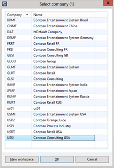 When the Select Company dialog box is displayed, you will see all of the companies that you have access to and you can just select the new company and click the OK button to switch within your current workspace.