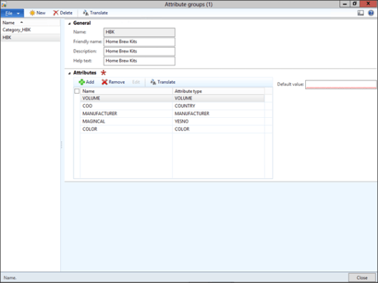 Within the Attribute Groups maintenance form, add a new record for an attribute group and then add all of the Attributes that you want to use within that group.