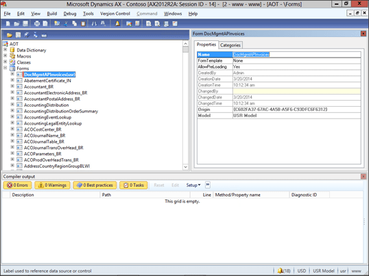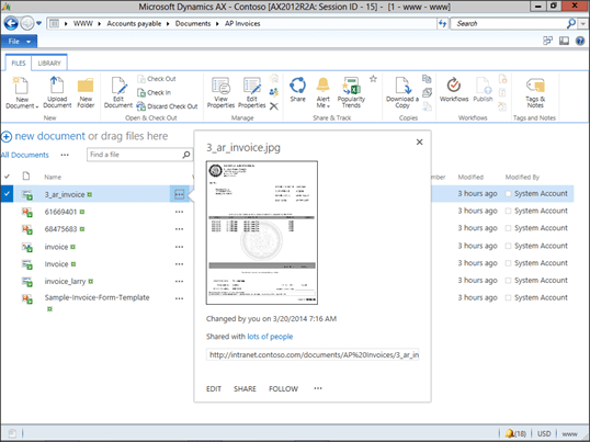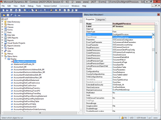 Storing documents within SharePoint is cool. It allows you to browse through the documents, it allows you to have version control, it allows you to add metadata that you can use to search for documents, it does everything. The problem is that if you work in the AX client all the time, then you have to switch out of the application in order to view all the related documents. Don’t worry. If you want to access all of the documents from within Dynamics AX then you can add it to the menu.