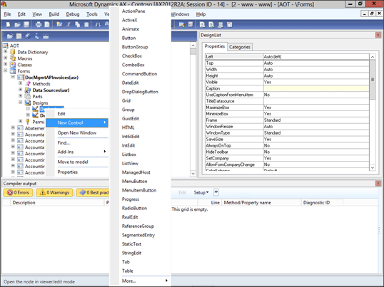 Finally we now need to add the menu item to a menu. To do that, open up the Menus group, and expand the menu that you want to modify (in this case the AccountsPayable).