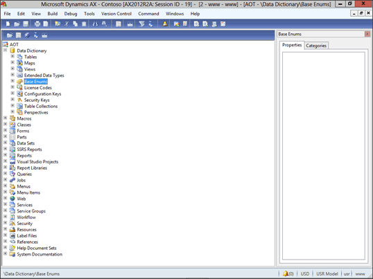 To add more types to Dynamics AX, open up AOT, expand the Data Dictionary group, and then expand the Base Enums group.