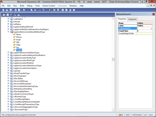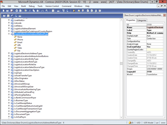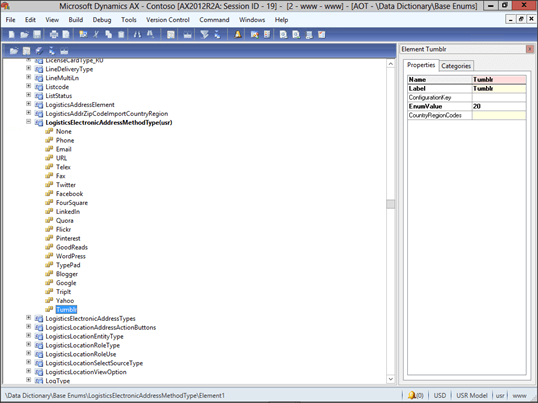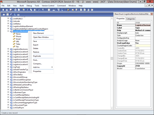 Now right-mouse-click on the LogisticsElectronicAddressMethodTypes enumeration, and select the New Element menu item.