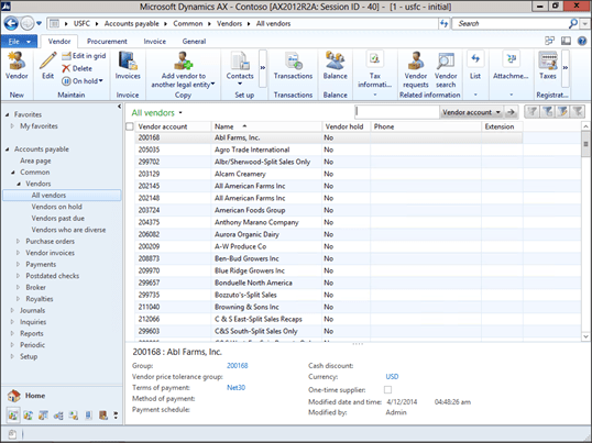 Just to set the stage for this example, we have one company that has a number of vendors loaded into one company.