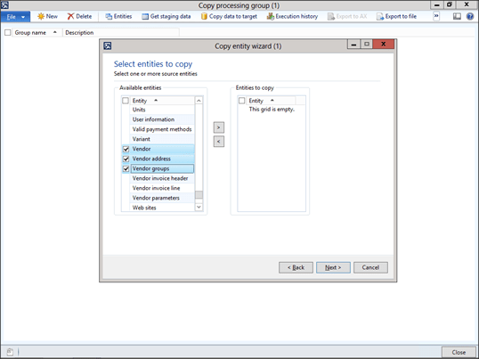 When you have selected the Entities To Copy, click on the Next button to continue on.