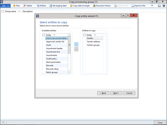 The Data Import Export Framework module is not just for getting data in and out of Dynamics AX through import and export files, it also has a nifty feature that allows you to copy data within your companies, so if you are configuring a new legal entity for testing or production purposes, and want to populate it with information from another existing company, you can replicate the data in a matter of minutes.