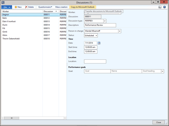 The only thing worse that having a “Discussion” with Human Resources is to miss a “Discussion”, and have another “Discussion” created to discuss your poor time planning. To solve this, you may want to think about creating sending out meeting reminders when Discussions are created, which is just the click on the button within Dynamics AX.