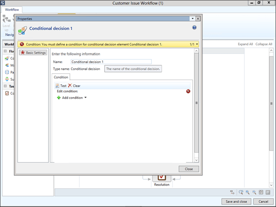 To add a feedback loop, drag the Conditional Decision workflow element onto the workflow canvas, and then click on the Basic Settings button within the Modify group of the Workflow ribbon bar.