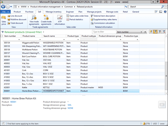 Open up the Released Products list page, select the product that you want to change the price for and then click on the View Trade Agreements button within the Trade Agreements group of the Sell ribbon bar.