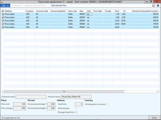 When the View Trade Agreements inquiry is displayed you will see all of the current pricing for the product.