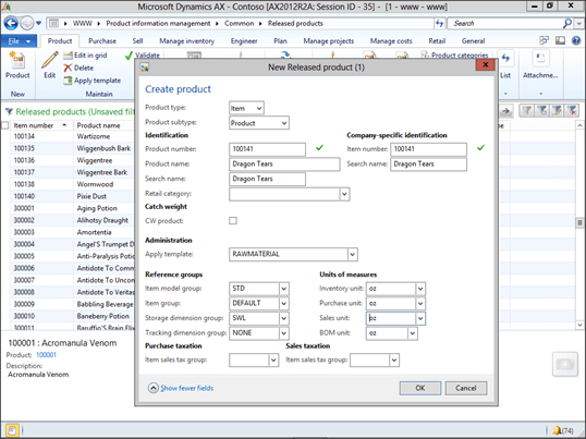 Now when I create a new record, Dynamics AX will suggest the next product number in the sequence that I normally add products within.