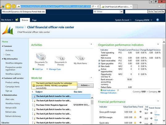 Dynamics AX comes pre-packaged with over 40 standard role centers for a lot of the normal user types that you would expect to see within an organization – CFO, Salesperson, AP Clerk, etc. Chances are though you probably have roles within your organization that don’t quite fit into those roles. You can either try to assign those users to one of the roles that most closely fits, or you can just create a new role centers especially for those users.