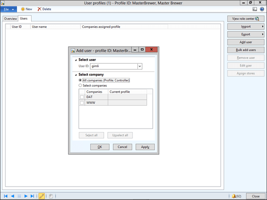 Then click on the Users tab. To assign your users Profile click on the Add user button.