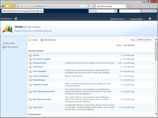 When the Site Contents page is displayed, click on the Enterprise Portal document library.