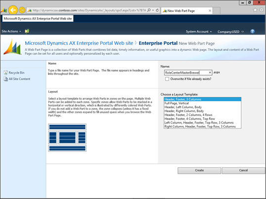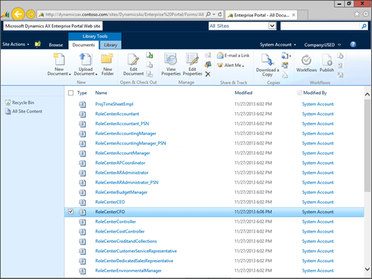 When the Enterprise Portal library is displayed, you will be able to see all of the default Role Center templates. They are easy to spot and all begin with RoleCenter.