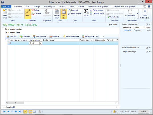 To see this in action, just open up your sales order and type in the phrase that you want to start searching on within the Item Number field.