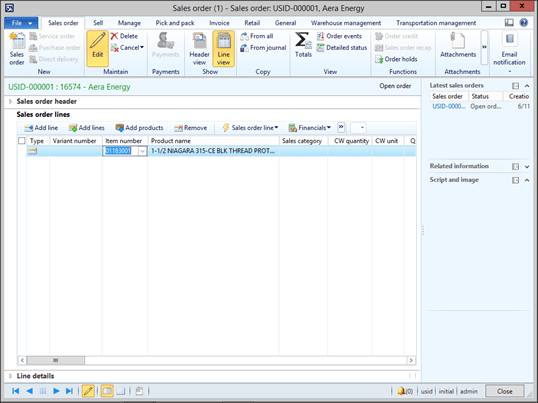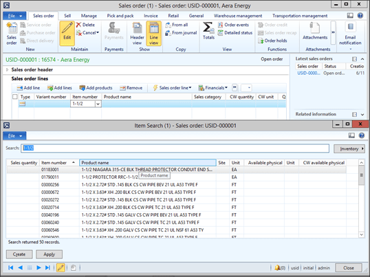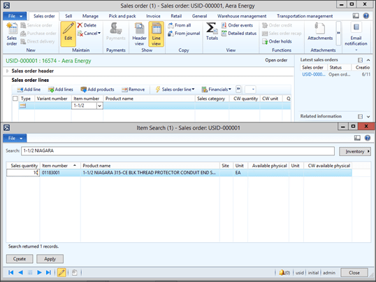 You can further refine the search until you find the product that you want and you can even add the product to the order line just by typing in a Sales Quantity and then click the Create button.