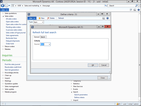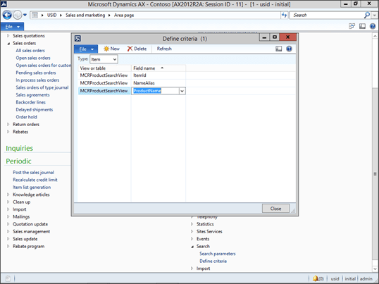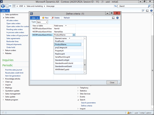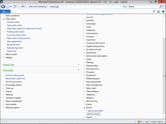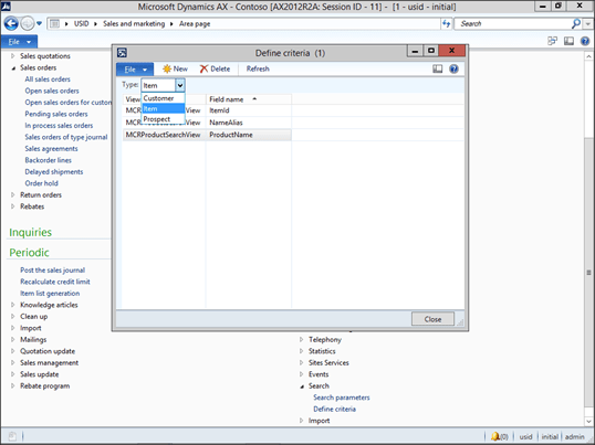 Now we need to configure the fields that we will be searching on. To do this, click on the Define Criteria menu item within the Search folder of the Setup group within the Sales and Marketing area page.