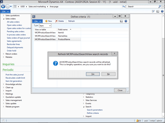 Although Dynamics AX tells you that this may take a while, click on the OK button.