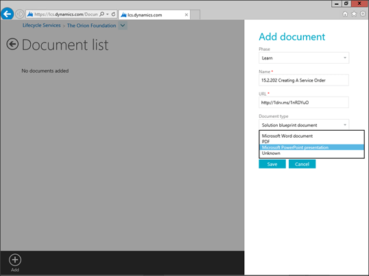 Lifecycle Services is the backbone to your Dynamics AX implementation since it allows you to model all of your business processes, and also track any changes that you may be making as you are getting up and running. It also has an option to attach documents to your projects and business process models. But the documents are stored within Lifecycle Services as links, and not as uploaded documents – probably because Microsoft doesn’t want you filling up LCS with attachments. That’s not a problem though because if you use OneDrive as your document filing system, then you can easily link them into your LCS projects and everyone has access to them without a problem.