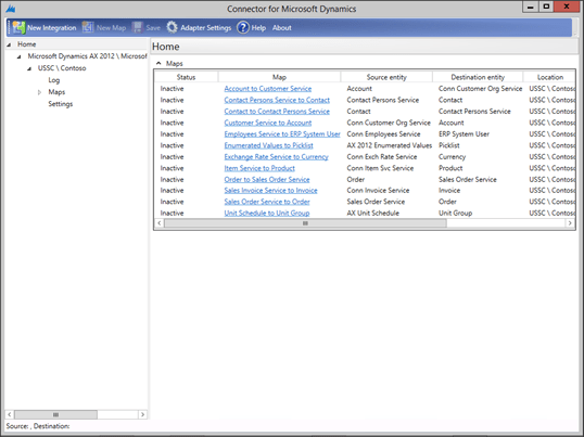 - This will set the first adapter to Dynamics AX, and the second to CRM. Select the Company that you want to synchronize with from the first applications dropdown list.