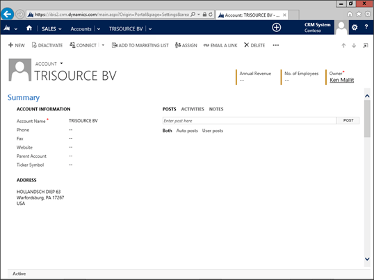 Hello Murray, thanks for your post. I have a question about linking Dynamics AX with Dynamics CRM. Do you know if it is possible to link a Standard-Dynamics-AX-Contoso-Image from Partnersource with a Dynamics-CRM-Contoso-Image by using the standard CRM Connector? Thanks for your help.